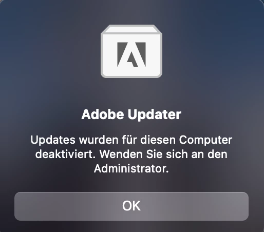 I always have problems updating Lightroom Classic (I use the current version 11.0.1 on MacOS) directly in the program via Help - Update - I always get the following error message: "Updates have been deactivated for this computer. Contact the Administrator". I have to uninstall Lightroom every time via the Creative Cloud and install it with the new version. Does anyone have a tip why you can't do it directly from the program? I am the administrator, but I have no idea where to change anything ...