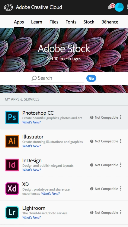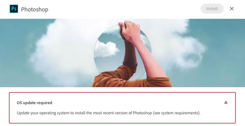 I have installed the Adobe CC app, but when I try to install the applications, i get "OS update required".