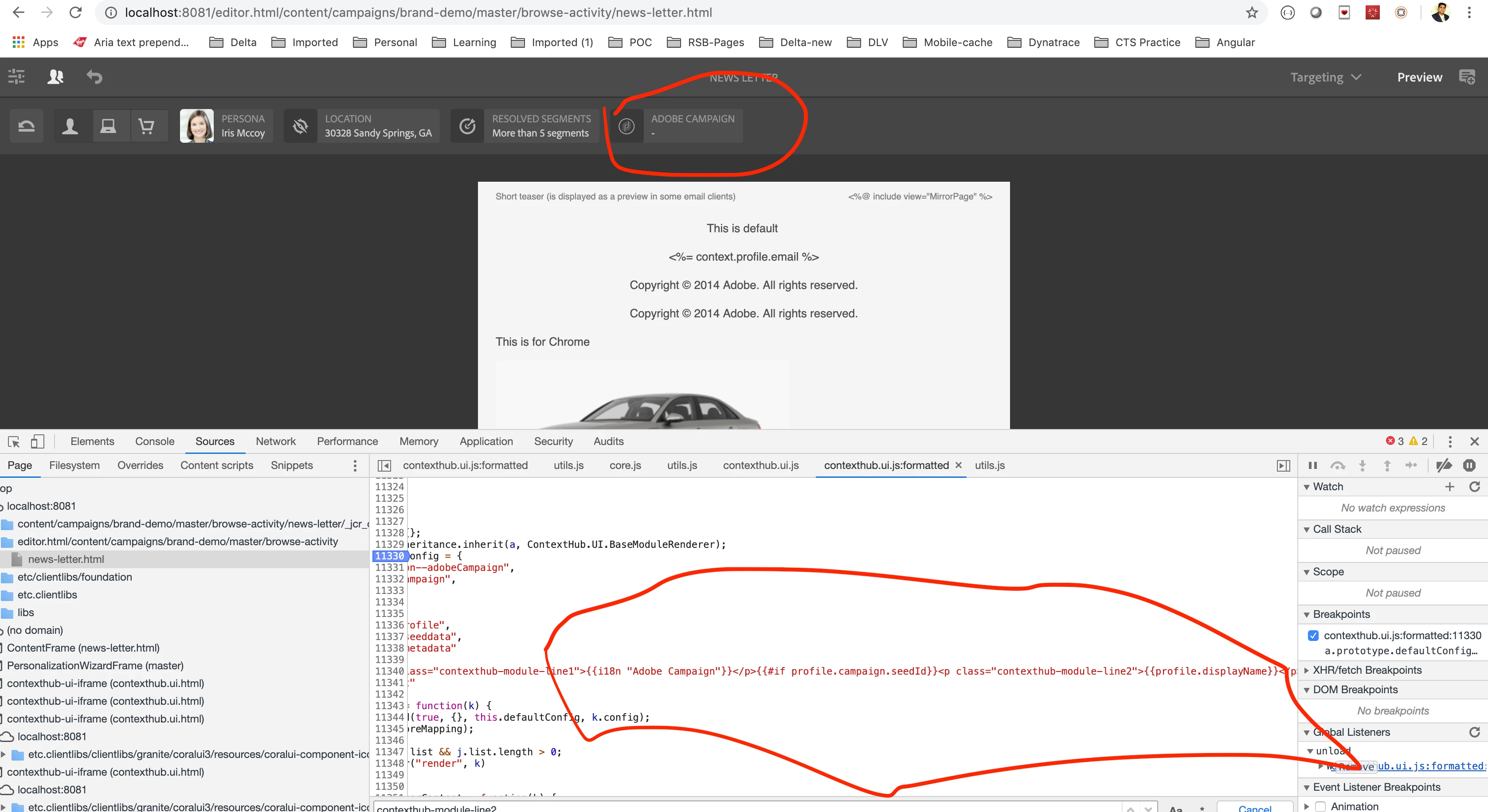 profile.campaign.seedId in AEM context hub component