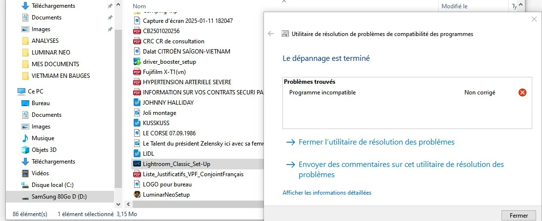 Bonjour, j'ai un PC avec Windows :10.0 architecture : X64, j'essais d'installer Lightroom Classic il m'est répondu : Programme incompatible, pouvez_vous m'expliqué pourquoi et si il y a une solution. Merci