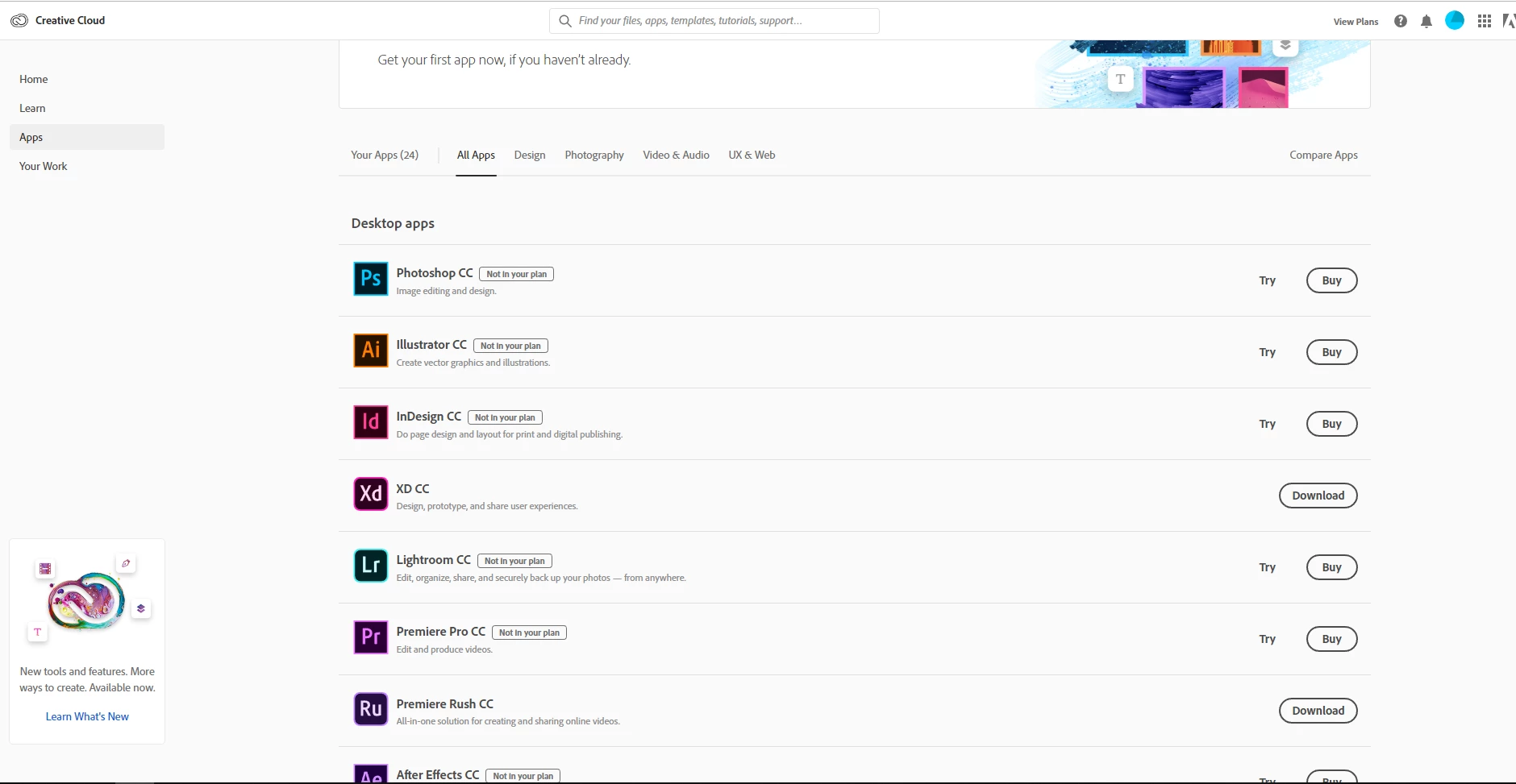 Is this normal? I didn't get this plan to use XD CC, or Premiere Rush CC. I got the plan to use indesign and illustrator...