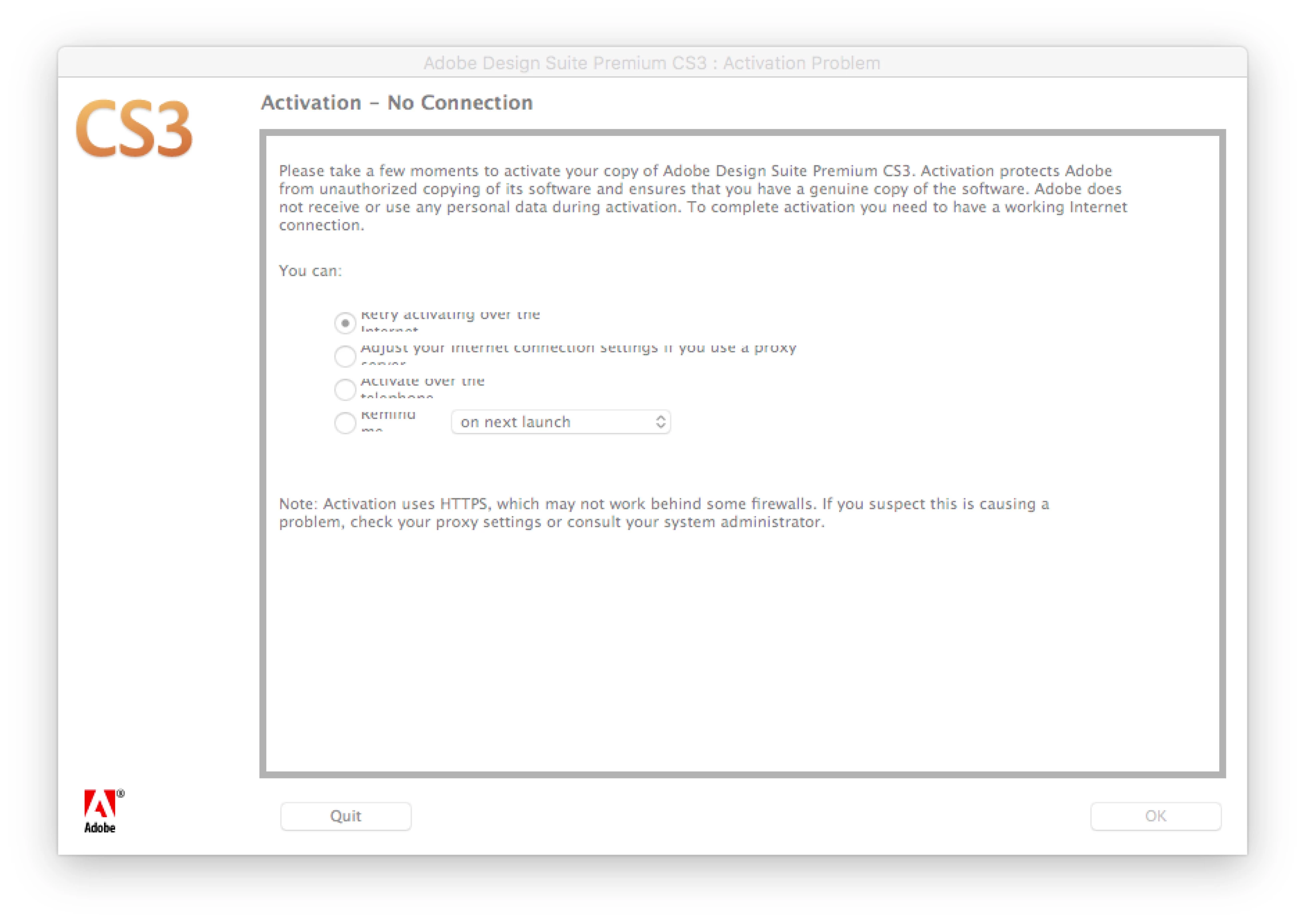Ok thanks for the update Jennifera84223390. Please see the suggestion I offered to Nick in post #16 of Re: CS3 - Still getting Activation Error Message with new Installer .