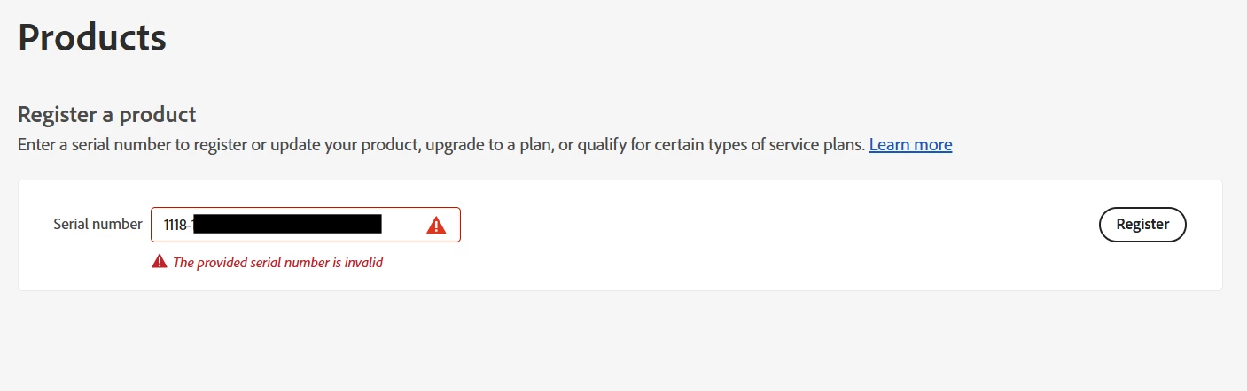 assuming you're using a valid adobe serial number (6 groups of 4 numbers), you have a mismatch between your installation file and serial number. ie, you can have a valid serial number, but if it's for program A and your installation file is for program B, you will see an invalid serial number message.
