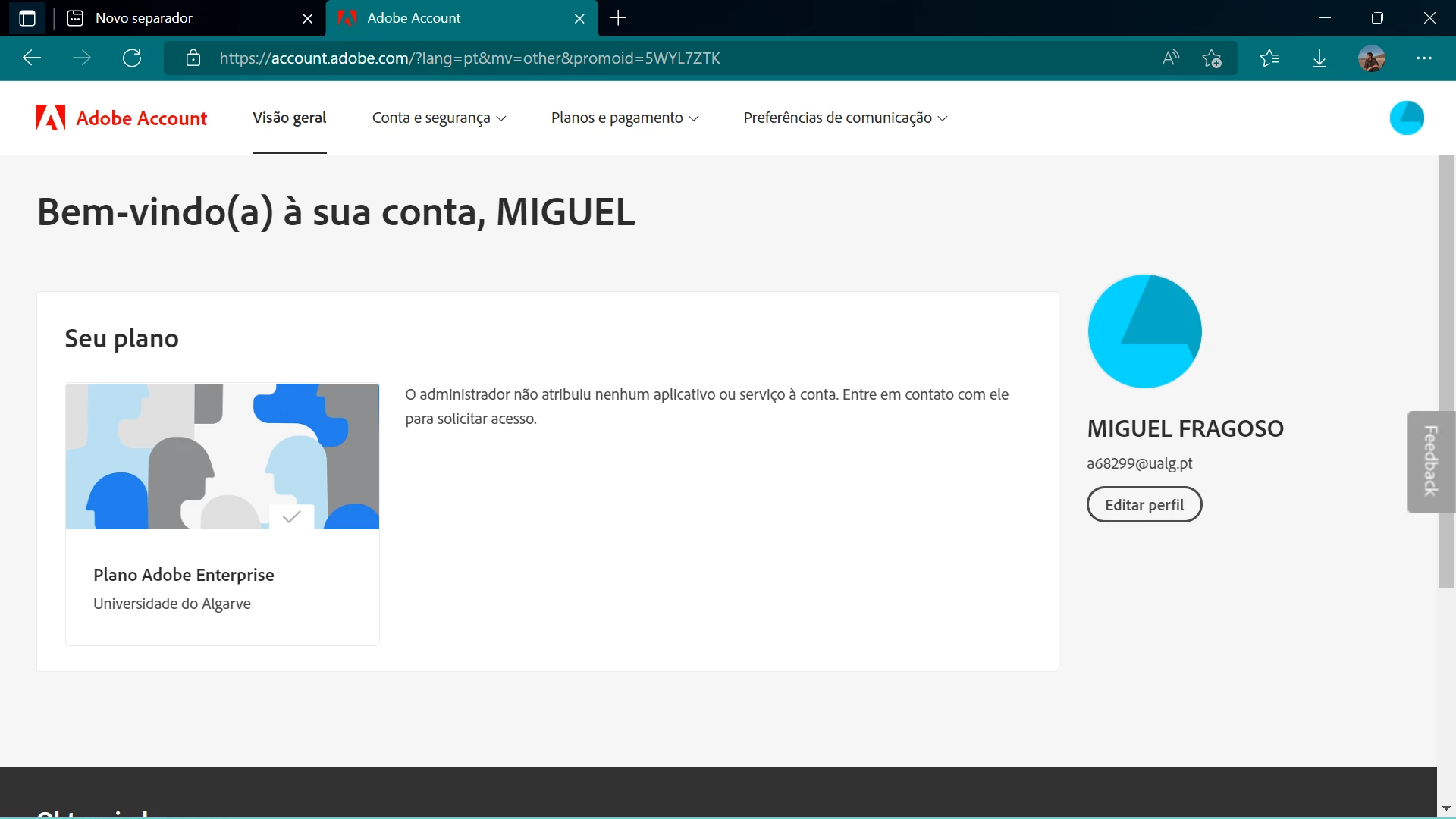 da Adobe Creative Cloud e porque quero usar o Pacote Estudantil, me parece que o Administrador me der permissão de alguma forma que eu não saiba, para poder desfrutar dos programas.