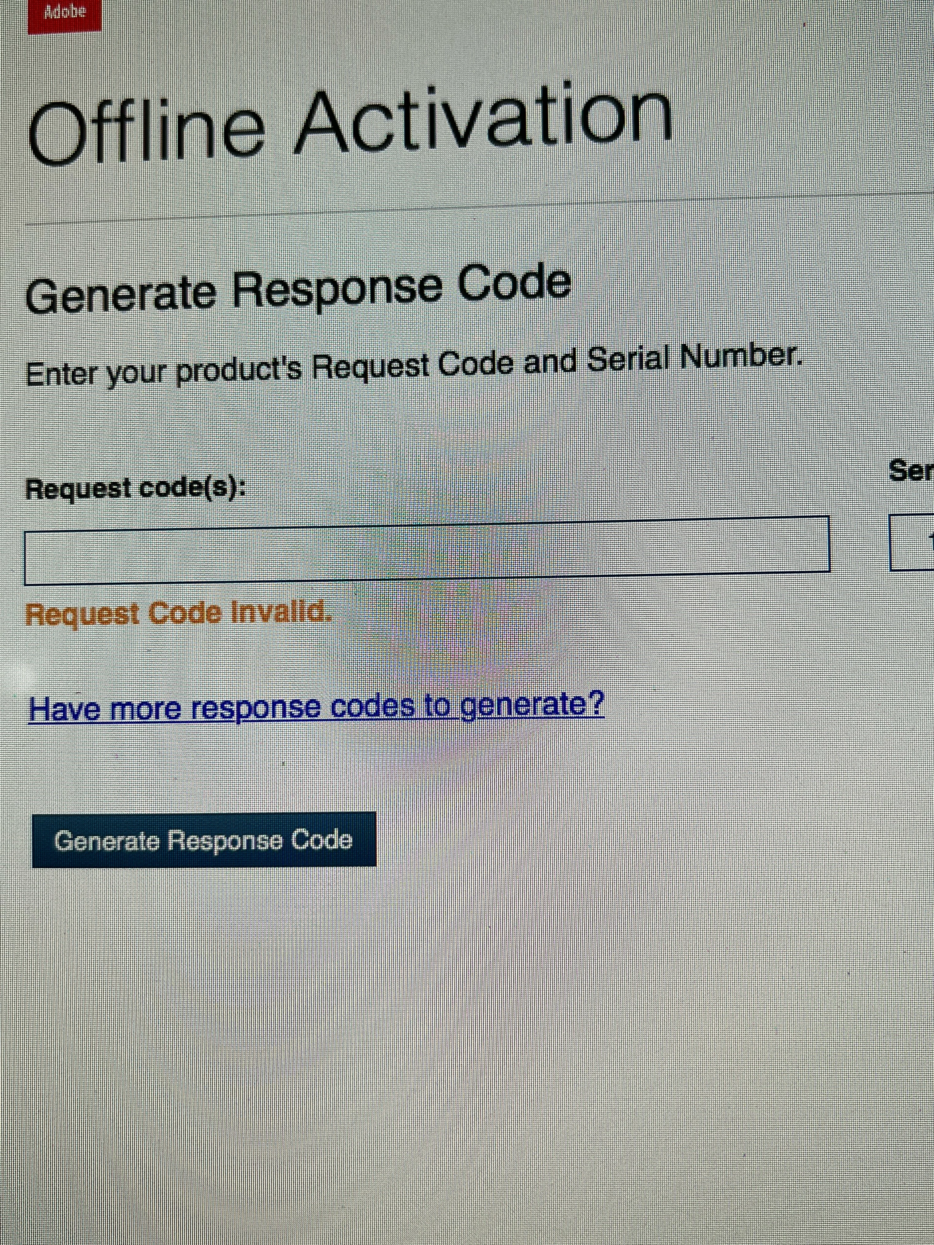 So I try that. It takes me through some steps where I exchange my Redemption Code for a Serial Number, then to a screen to enter a "REQUEST CODE" and my serial number that I just obtained.