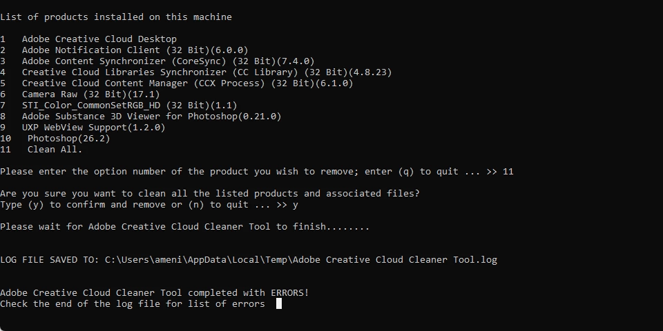 Hello, I keep getting the error "Access is restricted" in the Creative Cloud client. I have already used the Limited Access Repair Tool and the Adobe Creative Cloud Cleaner Tool. I have also uninstalled and reinstalled everything after the Adobe Creative Cloud Cleaner Tool and restarted the PC, but the problem remains. With the Adobe Creative Cloud Cleaner Tool, instead of at the end: "Adobe Creative Cloud Cleaner Tool completed with ERRORS! Check the end of the Log file for list of Errors" but where can I find these? And what else can I do?