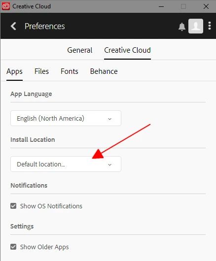 Rétablir par défaut l'emplacement d'installation des produits Adobe CC