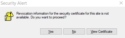 Revocation information for security certificate not available