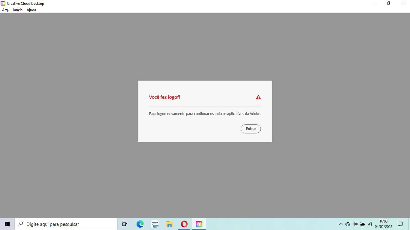 estou tentando instalar o adobe cloud desktop e quando chega em 57% da instalaçao ele vai direto para 100% e depois aparece que fiz logoff e tenho que logar, ai toda vez que tento logar aparece esse mesmo erro, não consigo instalar o aplicativo de jeito nenhum