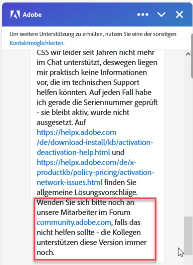 Der normale Support hat die Seriennummer geprüft und mich an seine Mitarbeiter in diesem Forum verwiesen. (CS5 wird vom Standardsupport nicht mehr supported...)