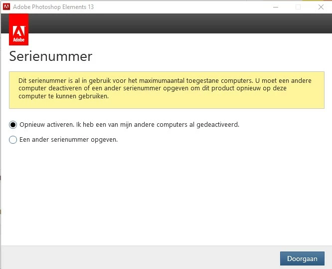 Na opnieuw win10 installeren wil ik ook Photoshop elements13 installeren, maar nu geeft hij aan dat het nummer tevaak gebruikt is. Ik heb twee PC's maar waar kan ik ergens zien dat dit serienummer op welke pc gebruikt is?