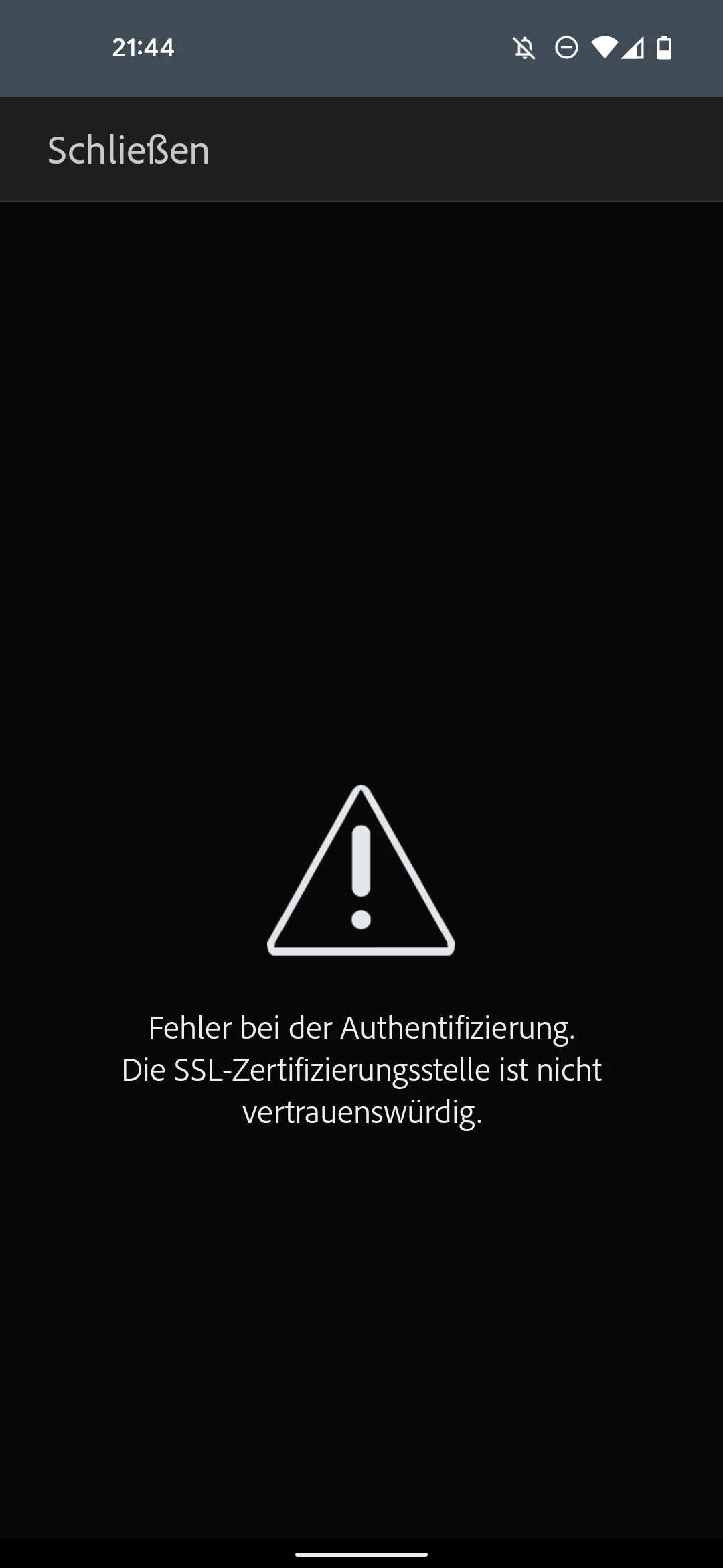 SSL-Zertifizierungsstelle nicht vertrauenswürdig - Creative Cloud App und Lightroom App Android