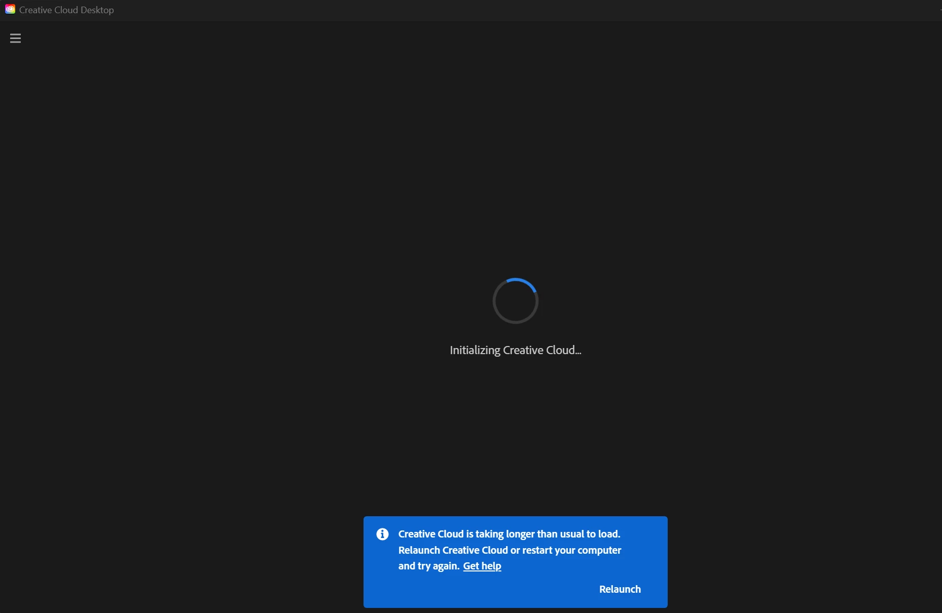 Stuck in "initializing creative cloud..."