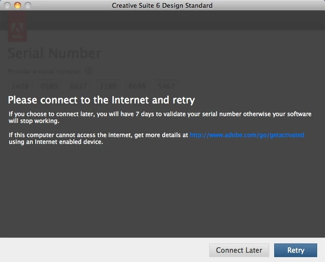 The installer told me to go to http://www.adobe.com/go/getactivated for an offline activation.