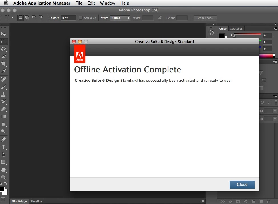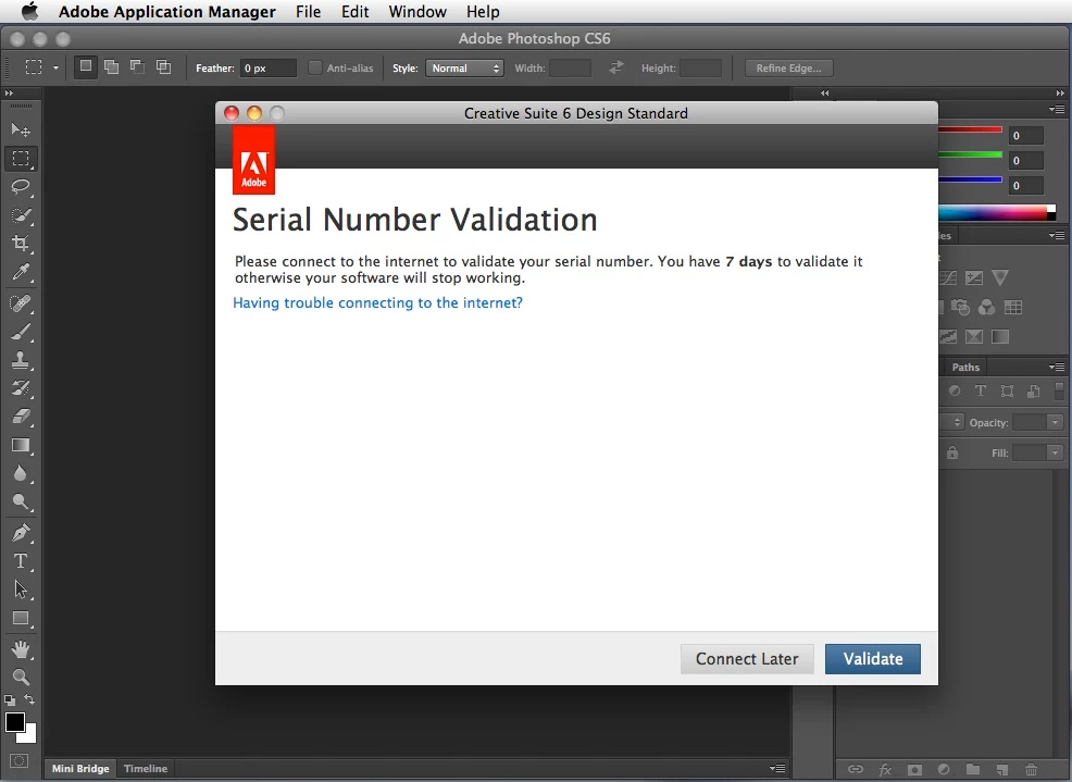 10. Open one of the CS6 applications (Photoshop in this example)