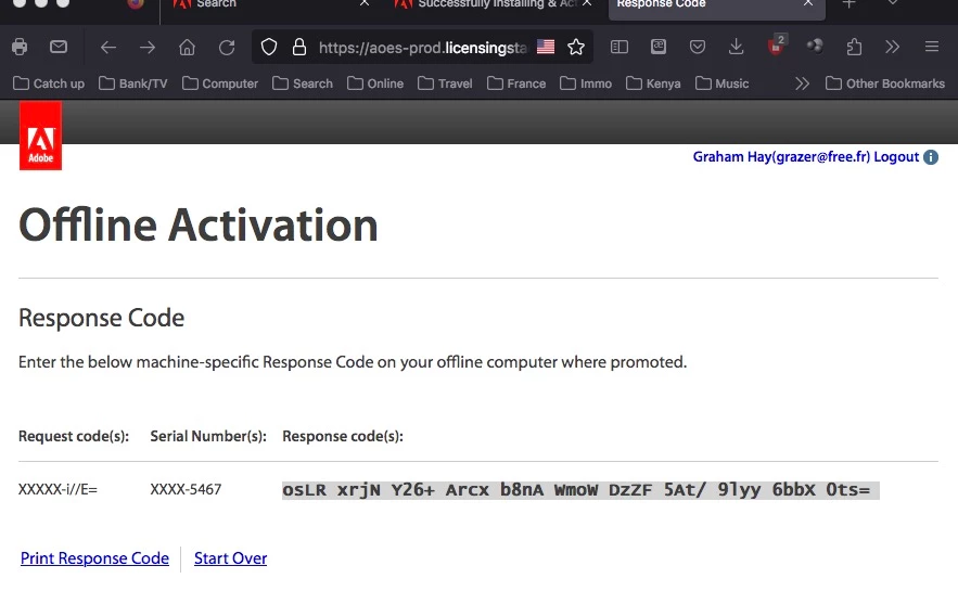 14. The Offline Activation window is still waiting to be completed. Copy/Paste the Response code from your Text Edit document into the Response Code field ...
