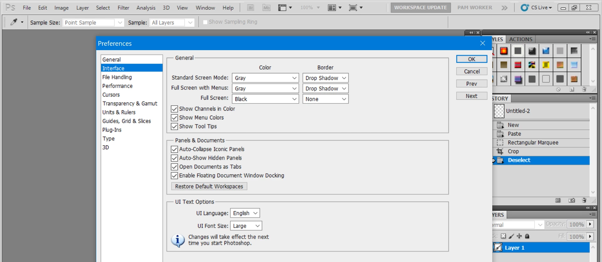 CC5: I have just bought a new laptop which has a dislay that is native at 3200x1800. InDesign and Adobe PDF are usable at that resolution. But the menus in Photoshop and any text is so small to be unreadable. Is there a way to enlarge the menus and other stull that is on the desktop. I have fiddled with the settings in windows (WIN10 needless to say, maybe it is that that is a problem), but I get nowhere.
