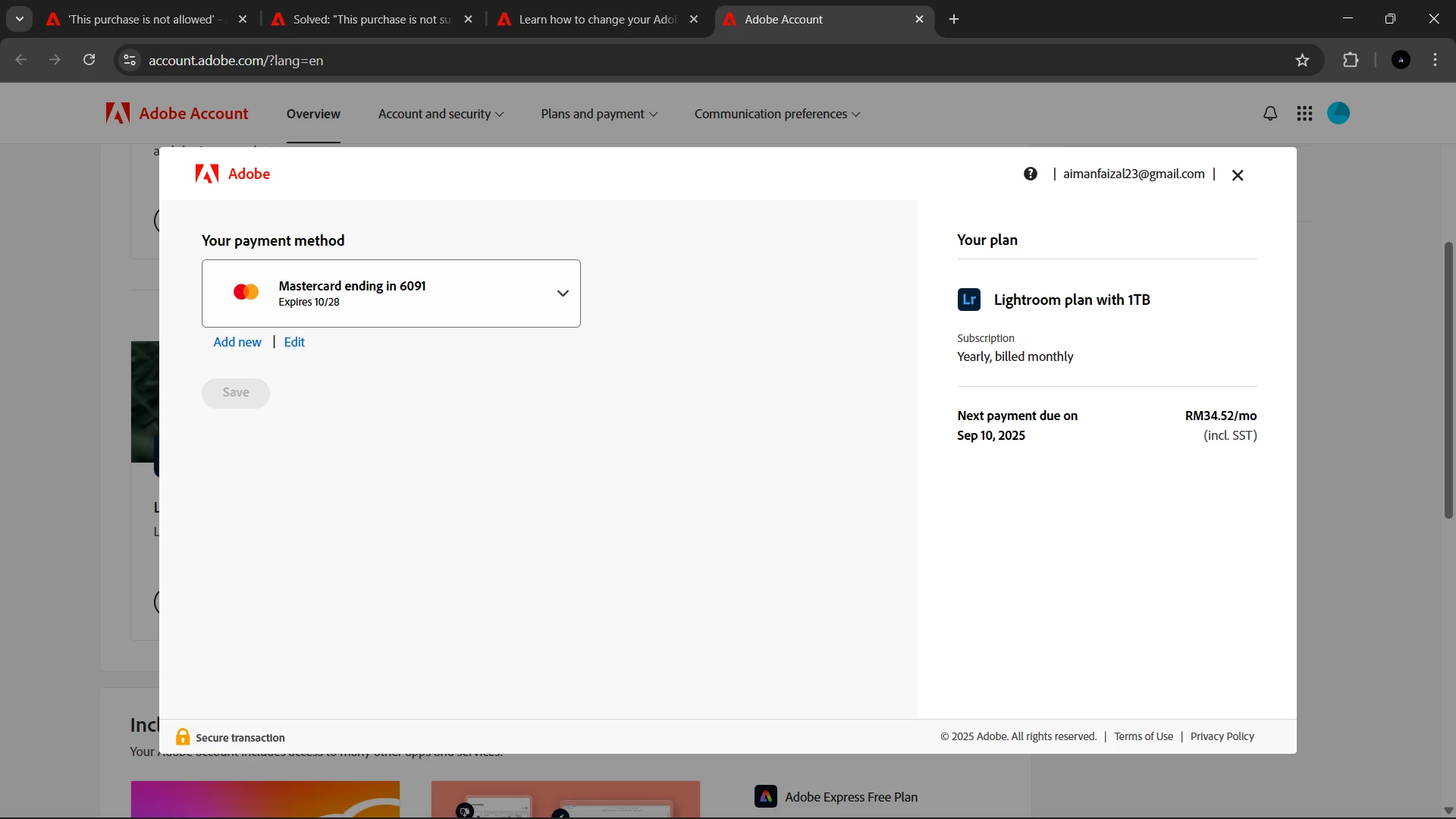 We appreciate you reaching out. On checking your account info, I found that you have certain pending dues on your account. You may not be able to make changes to your account before clearing the pending payment. Are you able to see all the subscriptions you have?