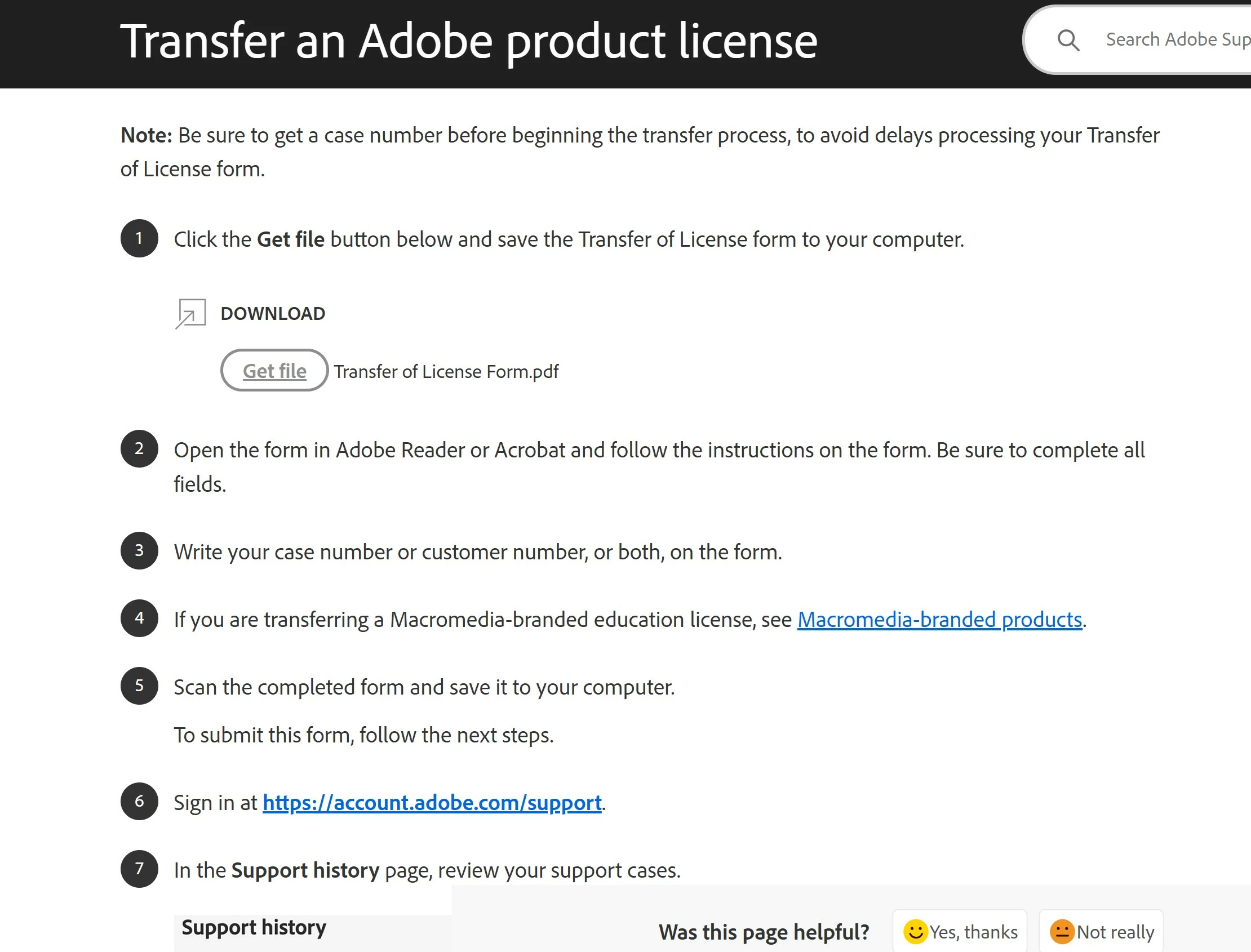 Hello guys, im currently trying to set up a transfer of my adobe photoshop 7.0 license to a buyer. I went already and got my case number set up,i just need to complete the transfer form on my end. For some reason tho I can't seem to download the form, anytime i try it says 'file isn't available on site". Does anyone know why? Any help would greatly appreciated.