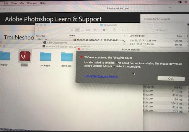 We've also tried redownloading it and we still had the same error. As well as trying to click on the "Get Adobe Support Advisor" link, which hasn't helped.