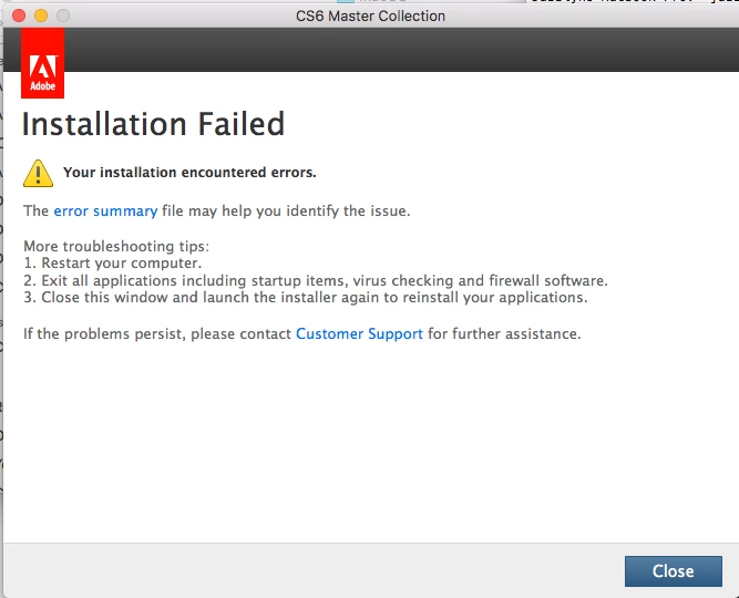Trying to Install CS6 Master Collection onto my Mac but I keep getting the same error