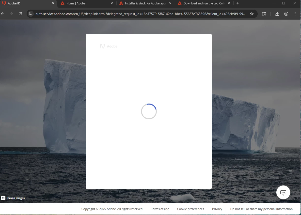 Had to get a new PC since my current PC would not support Win-11... Am re-installing all my 'old' applications that I was using on the prior PC. My Adobe Photoshop CS6 Extended seems to start the installtion but when it gets to the final stages of popping up a link to log into my Adobe account, the page just stays stuck in a spinning blue circle and the installtion never completes (screen-snip attached). I have no issues logging into my Adobe account by opening a new browser window, but that does nothing to help complete the installtion. 😞