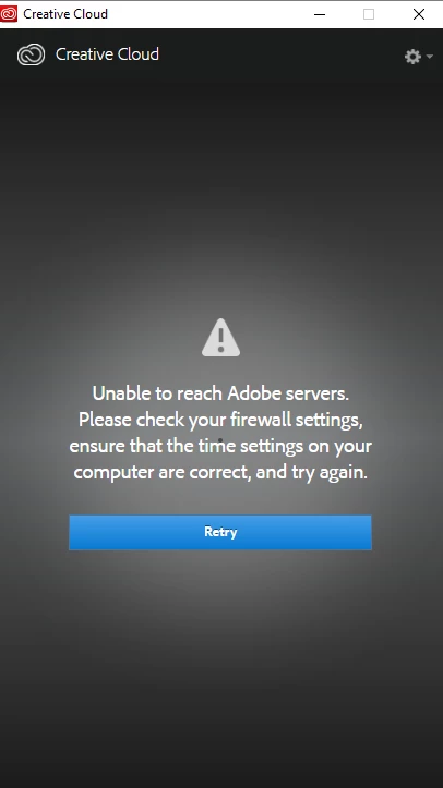 Unable to connect to Adobe servers, please check your firewall settings and time settings