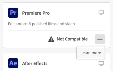 I'm currently trying to install the latest versions of the CC Suite on an older Mac Mini with Mac OS 10.14.6. While Photoshop and Bridge can be updated to thier latest compatible versions. With all the other CC Apps im encountering the following issue: