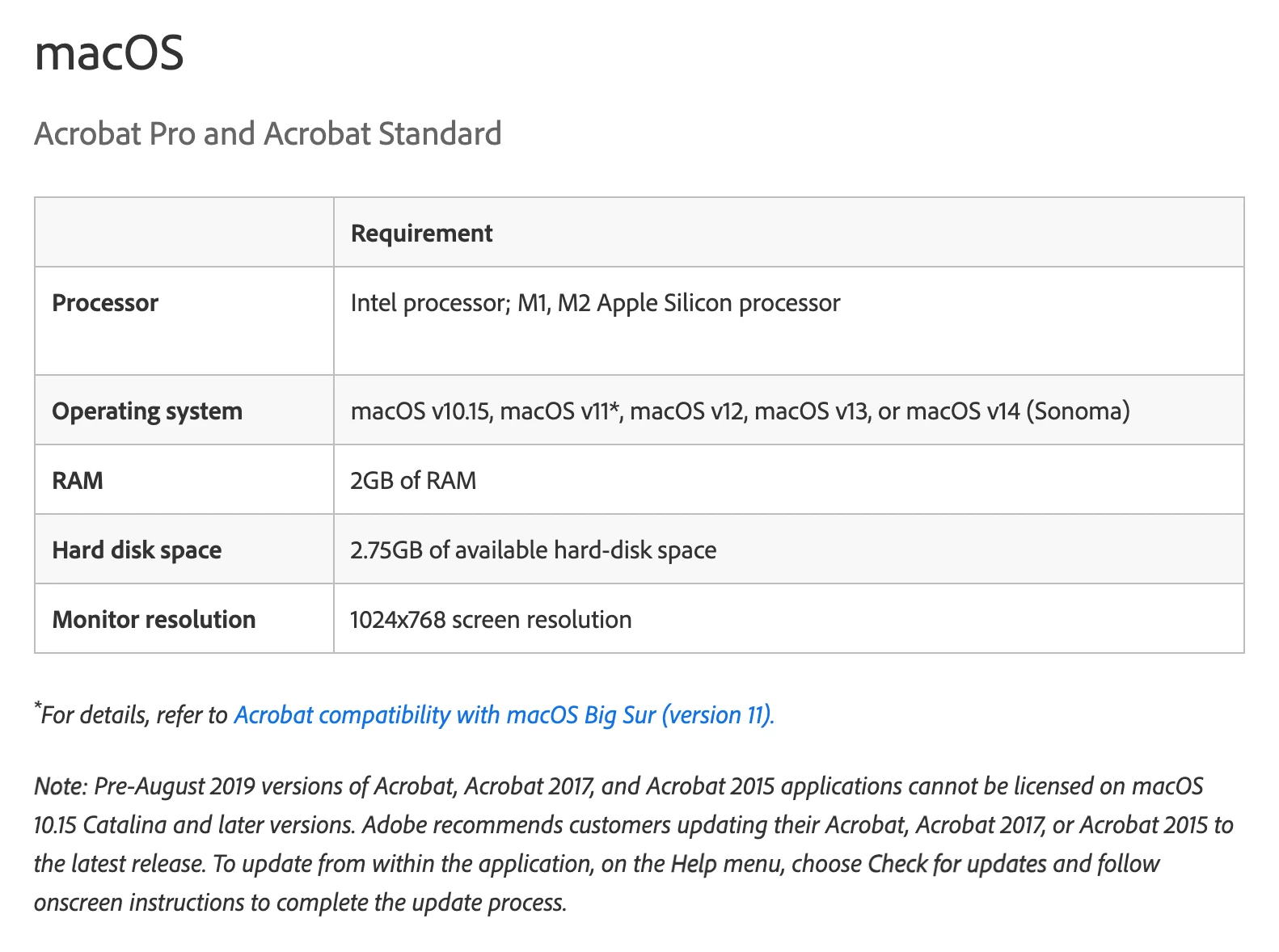 aHi everybody, I hope you are having good Christmas season. I updated my Mac to Mac Os Monterey. I had Adobe pro XI and it is impossible to even open it in Mac Os Monterrey. I paid a permanent license of Adobe pro XI. I don't know what adobe version I should instal for it to work on Mac Os Monterey. I don't know if I can update my adobe license to that version compatible to Mac Os Monterey but the most important is What adobe professional is compatible with Mac Os Monterey. I would really appreciate if anybody could help me. Best regards,