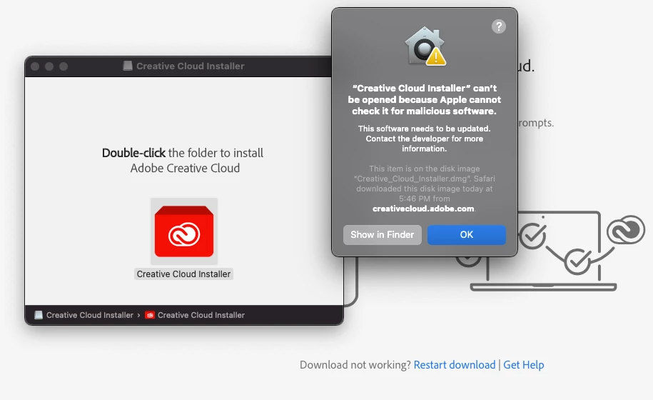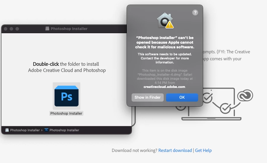 Trying to install Photoshop on my Mac with MacOS Big Sur 11.6.4