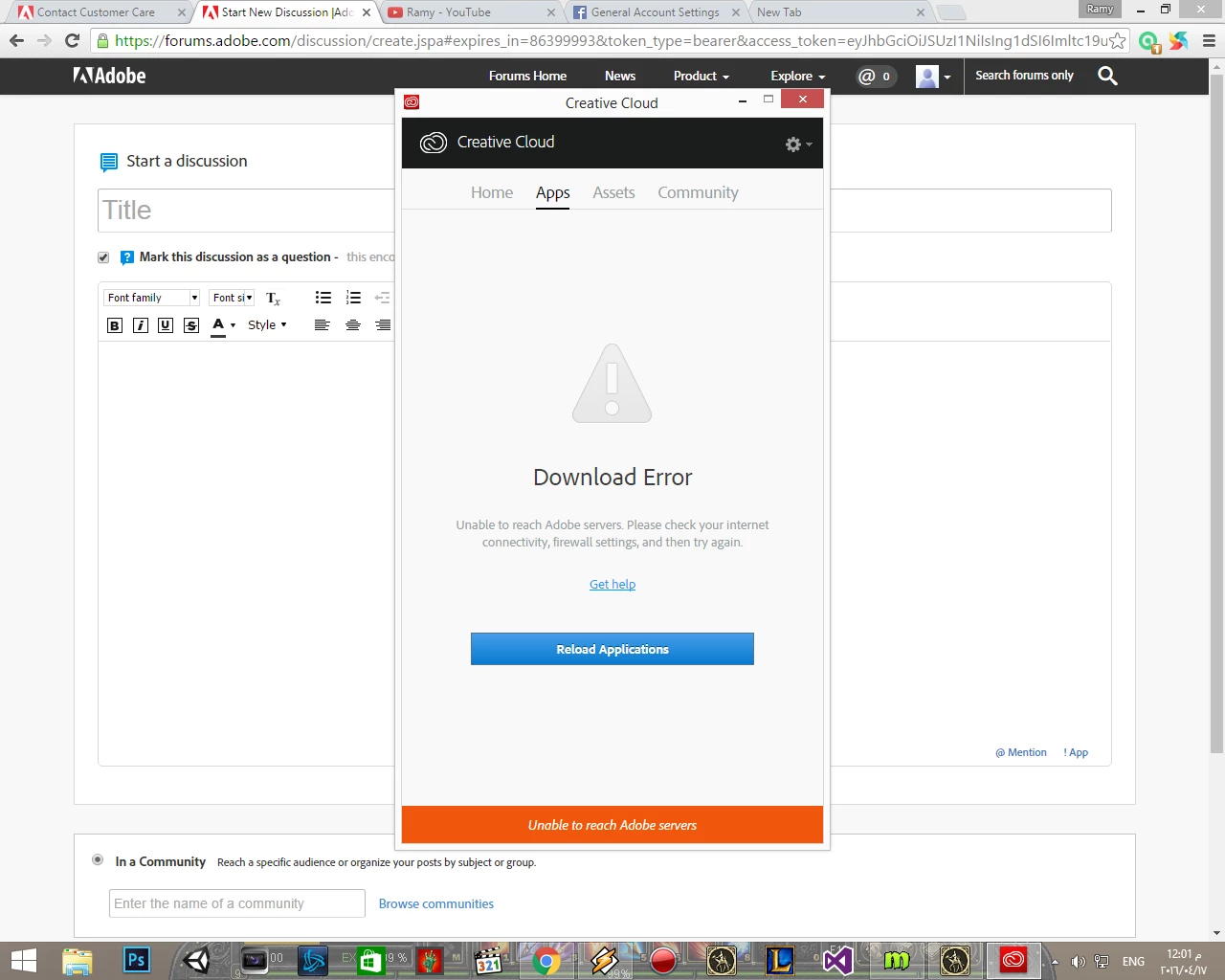 I'm Getting Dis Error "Unable to reach Adobe servers . ~~~~~~~"