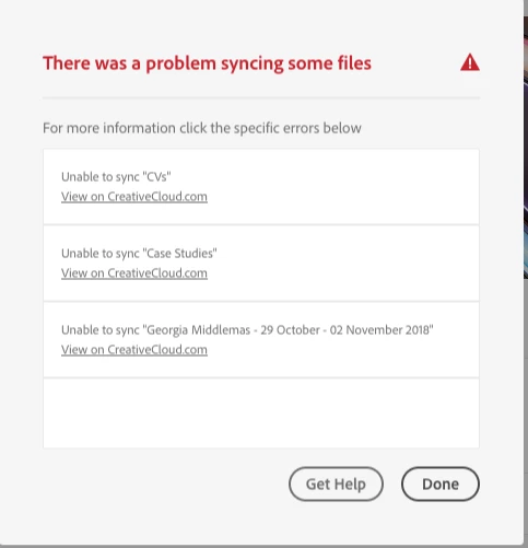 I have been getting the attached error message without any explanation as to why they are unable to sync therefore not being able to resolve the issue. The last file was not created by me and has since been deleted by the user. Does anyone else have this issue/know how to fix?