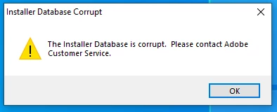 Unable to uninstall CS4 - installer Database is corrupt - Error 6