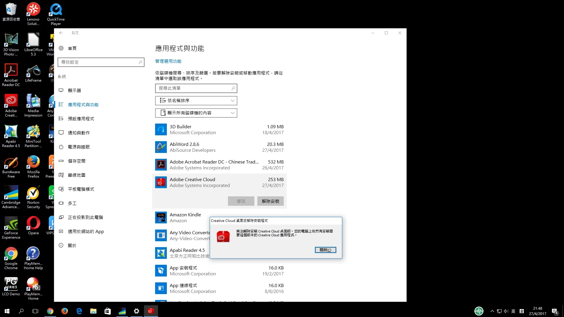 Unable to uninstall the Adobe Creative Cloud from Windows 10