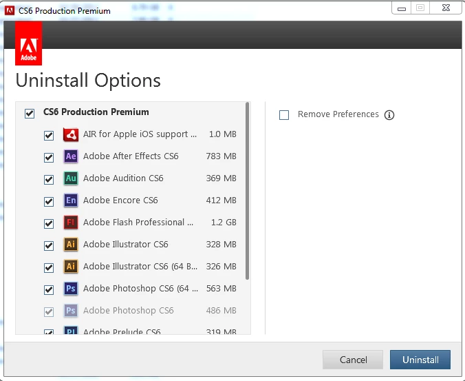 Uninstall Selected CS6 Applications