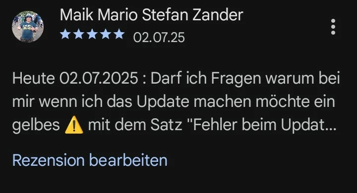 heute wollte ich das neue Update über Play Store runterladen was bis letztes Mal hervorragend klappte aber heute habe ich ein gelbes
