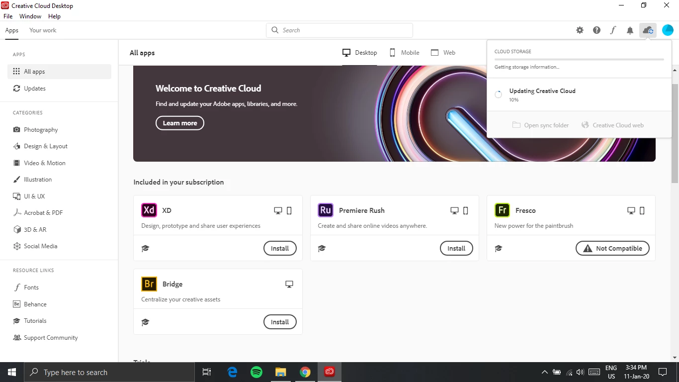 ahtishama52624971ParticipantForum|Forum|6 years agoJanuary 11, 2020QuestionUpdating creative cloud stuck at 10%,i'm using windows 10.Forum|Forum|6 years agoJanuary 11, 20200 replies169 viewsInstallationCreative Cloud