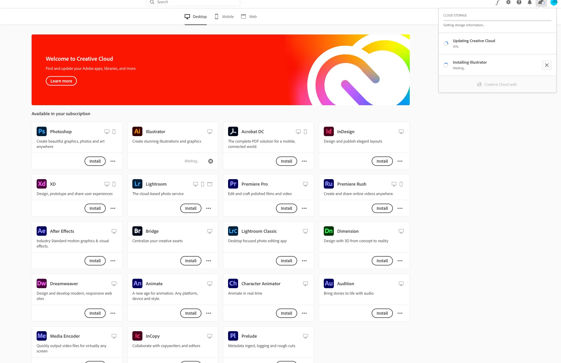 Updating Creative Cloud stuck at 33% and the Installation Illustrator doesn't even initiate