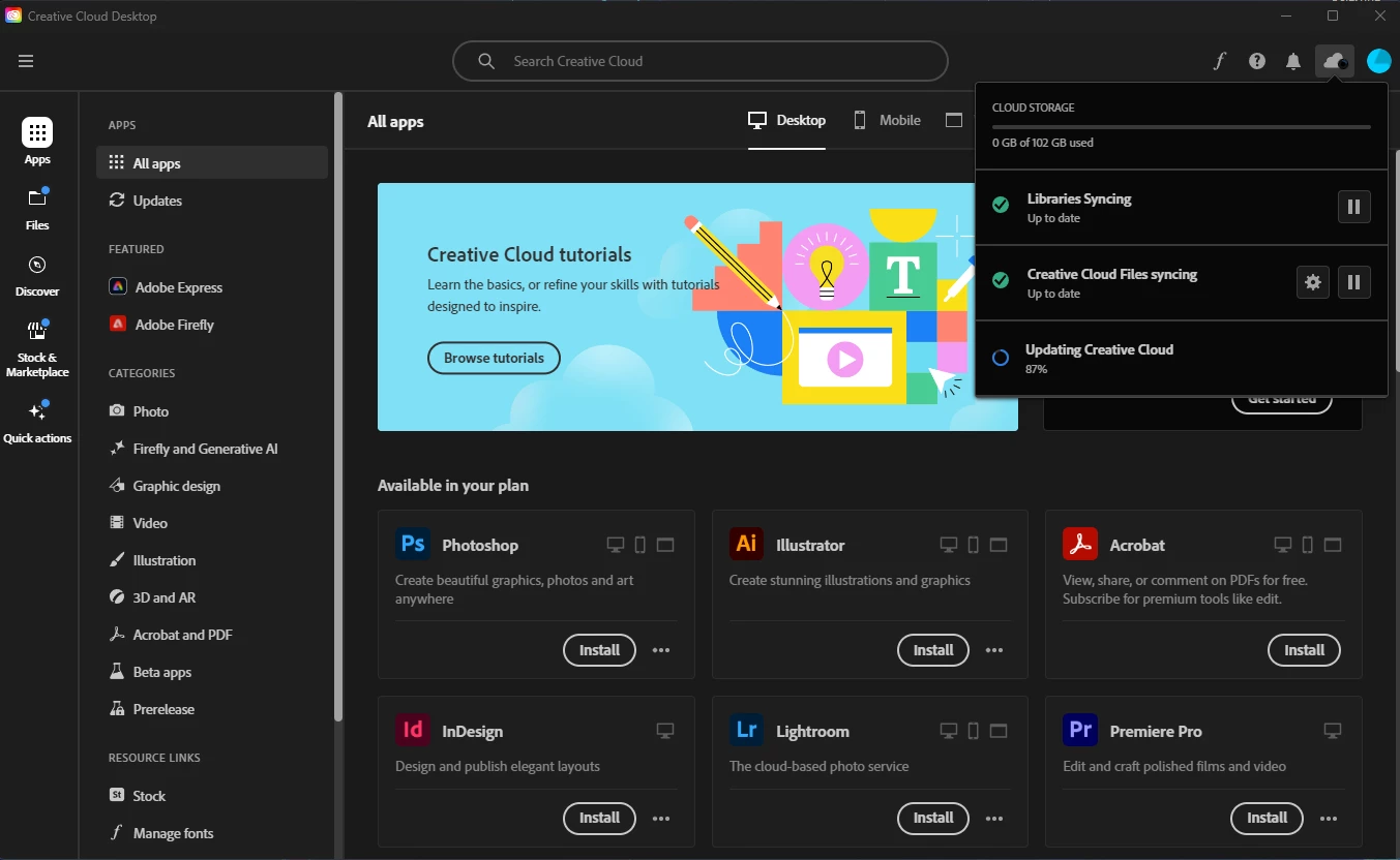 Updating Creative cloud stuck at 87%
