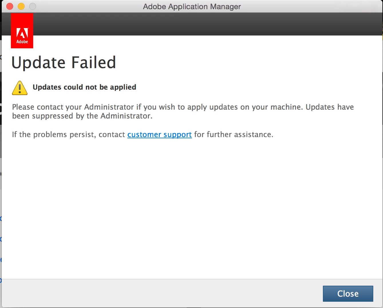 and running the AdobePatchInstaller.app I get an 'Update Failed' error (see pic).