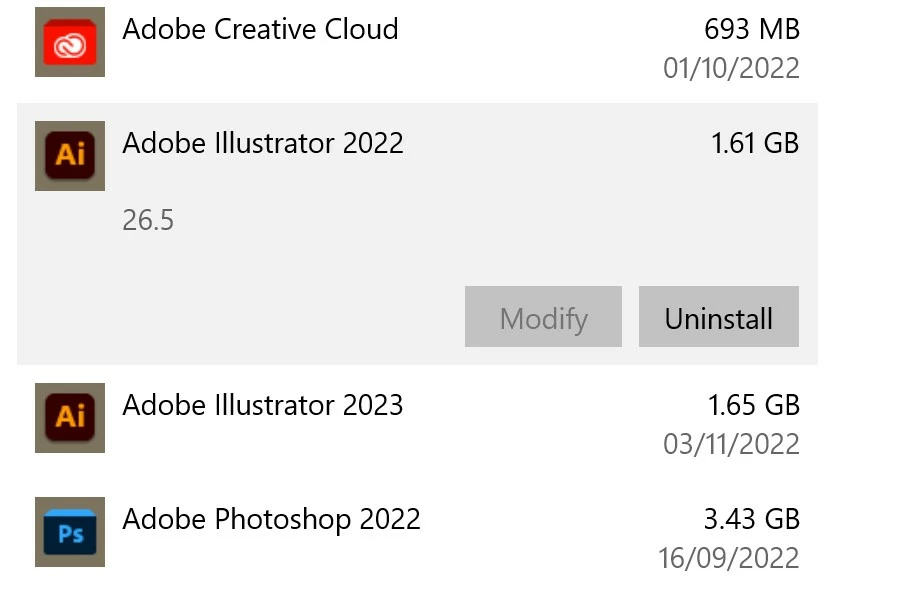 Tried deleting but Adobe dictates what I can and can't have