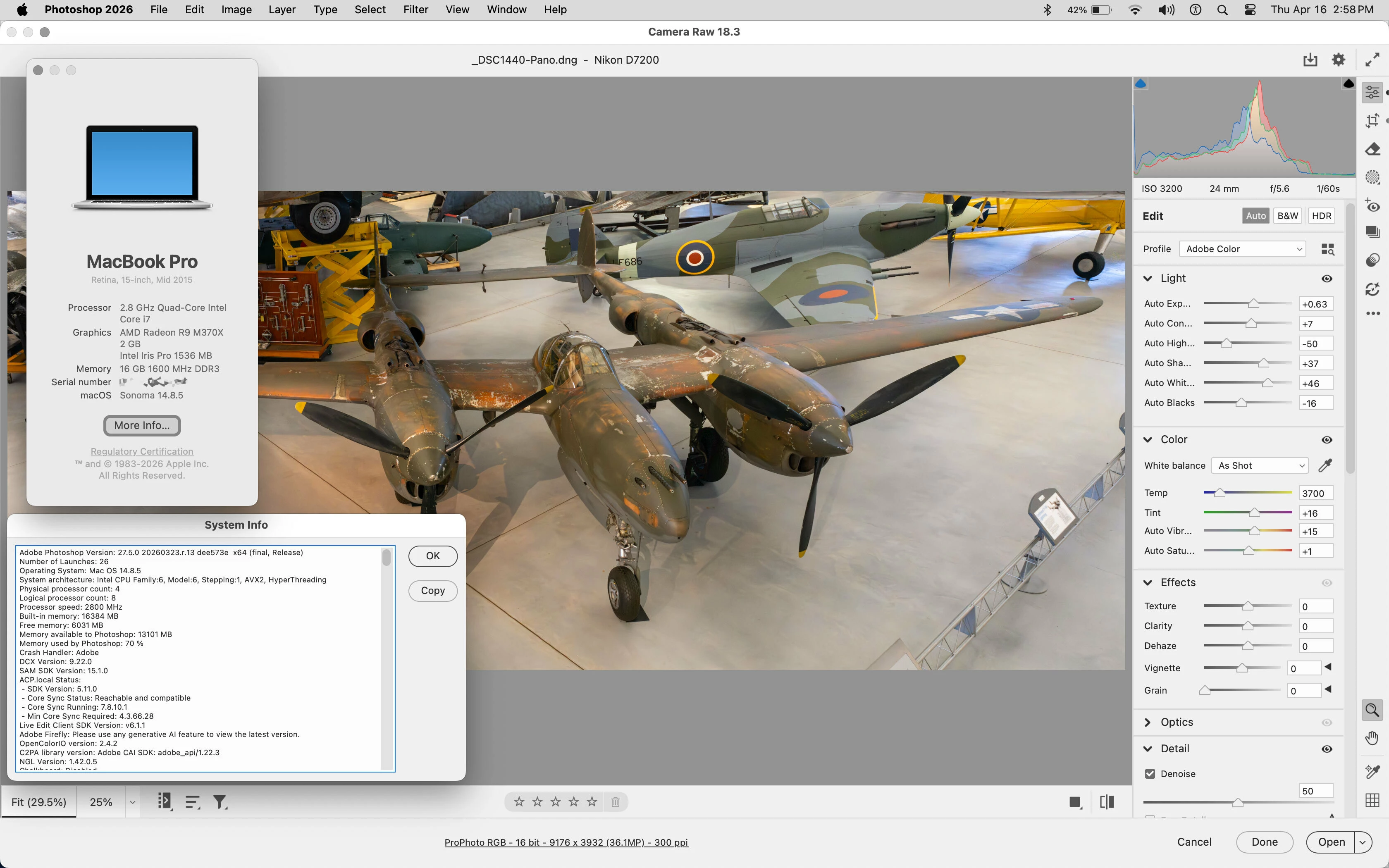 Which versions of Lightroom and photoshop are compatible with OS X El Capitan Versione 10.11.6 MacBook Pro Processore 2,2 GHz Intel Core i7 Memoria 16 GB DDR3 a 1600 MHz Grafica Intel Iris Pro 1536 MB