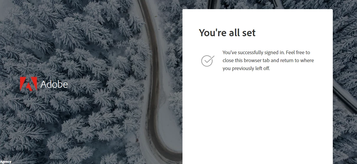 In tab said - You’ve successfully signed in. Feel free to close this browser tab and return to where you previously left off.