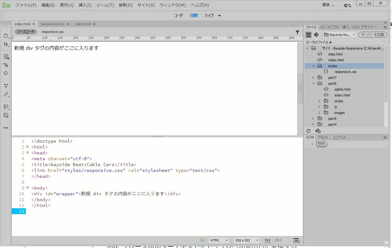 SshouichikParticipantForum|Forum|5 years agoMay 20, 2020Question体験版使用中での質問ですForum|Forum|5 years agoMay 20, 20201 reply235 views昨日使い始めたばかりですが躓いてます。チュートリアルの二回目テキストコンテンツの追加と書式設定の、関連ファイルツールバーで、「responsive.css」をクリックしますの時に表示される画面が違います。一行目の1 @charset "utf-8";が無く、一行目に1 #wrappr {となっていますが、これでいいのでしょうか。 また、その後のプロパティインスペクターで、「フォーマット」ドロップダウンメニューを開きですが、該当する箇所が見当たりません。(画像) 超初心者で、とんもない質問かも知れませんが、ここで止まって前に進めなくなくなっています。よろしくお願いいたします