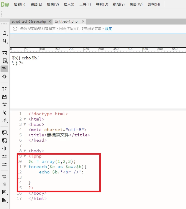 About php code, it is wrong in design view