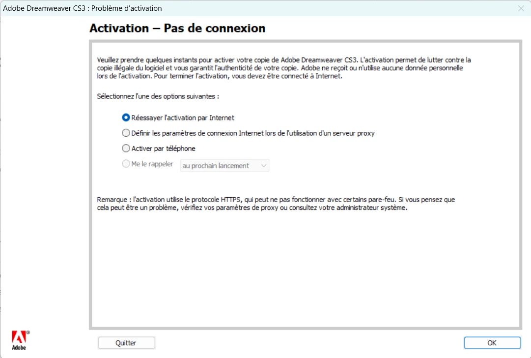 activation Dreamweaver CS3 sur nouvel ordinateur [CS3 is DEAD]