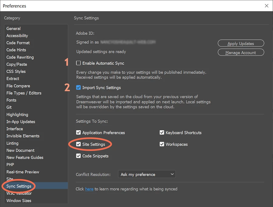 Adobe Dreamweaver CC 2020 is missing icon to upload files to remote server