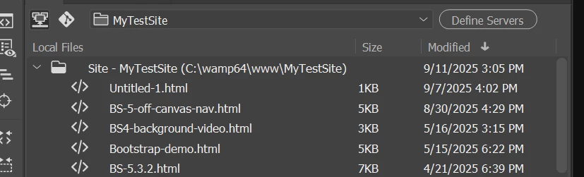 Adobe Dreamweaver CC not putting newly saved files to the top of local files folder