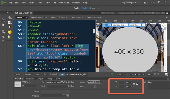 I resized the image in Dreamweaver, however the bounding box is still keeping to the original size of my imported logo image.