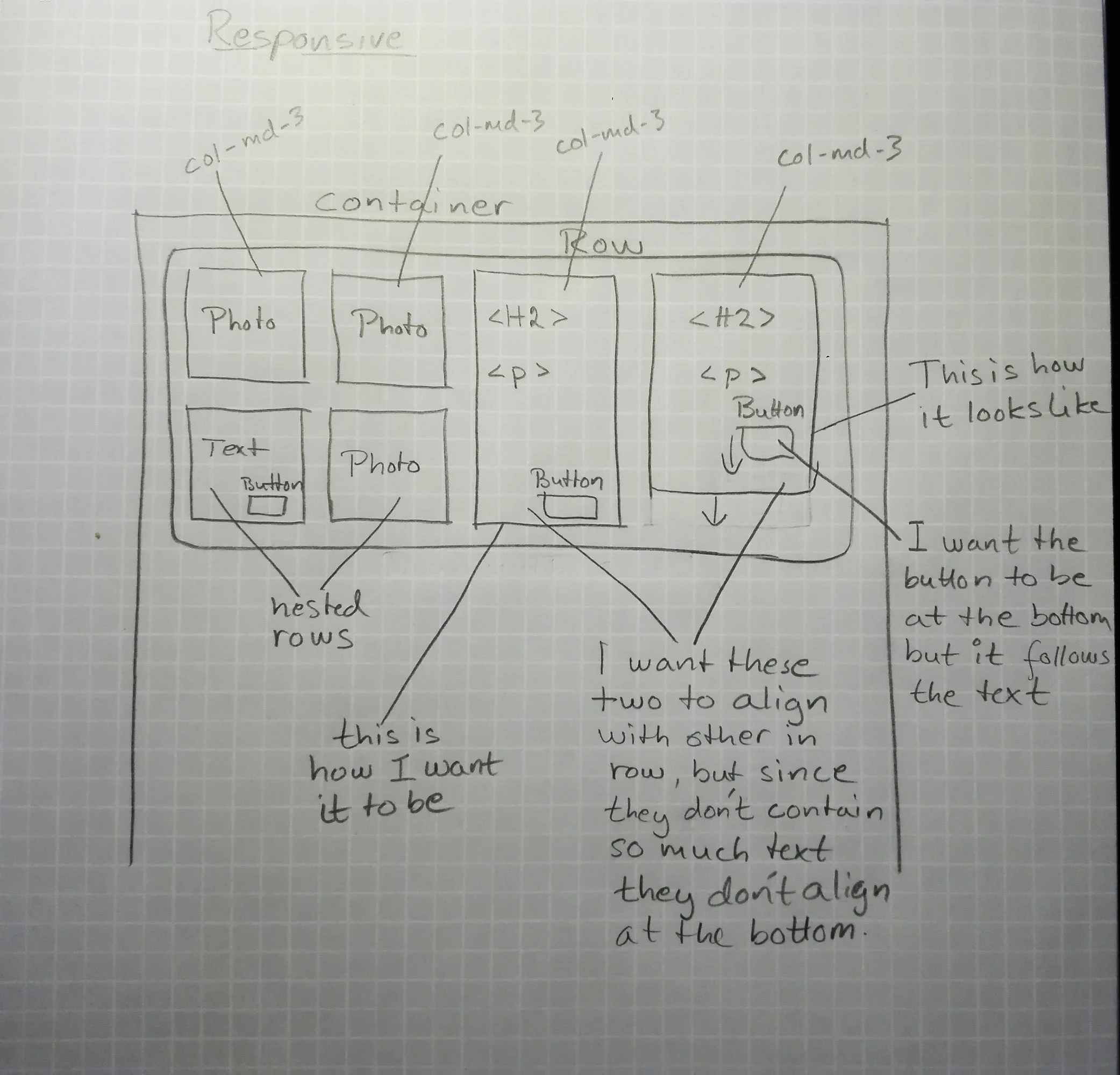 I wonder if anyone could help me to solve a problem in Dreamweaver CC? The problem is that I can't align some textcontent with a colored background in the bottom with other content in a row. The sketch illustrates what I mean. I have tried with 100vh but that doesn't work, and I've tried with grid-containers, but though I have a margin on the right side the content flows outside it. What shall I do? I'm not using pixelheight because I want it to flow when resizing browswers.